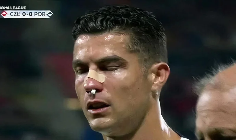 Столкновение с чешским вратарём обернулось для Криштиану Роналду разбитым носом Португальцы одержали крупную победу в поединке Лиги наций. , Спорт