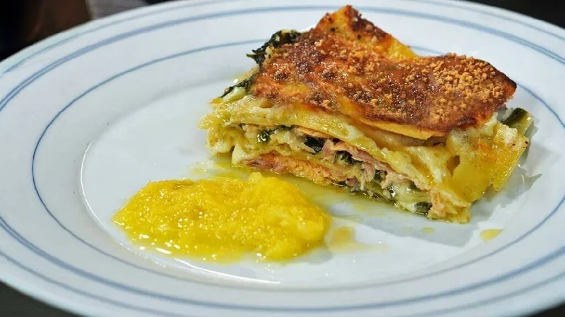 Лазанья с лососем, шпинатом и ветчиной Сегодня мы приготовим сочную и необычную лазанью. , Еда и рецепты