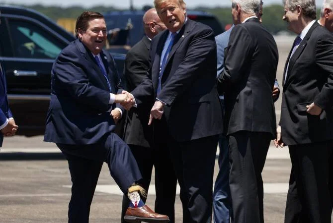 Вице-губернатор Луизианы на встречу с Трампом надел носки с его портретом Вице-губернатор американского штата Луизиана Билли Нангессер встретил президента США Дональда Трампа в «волосатых» носках с его портретом. , Новости