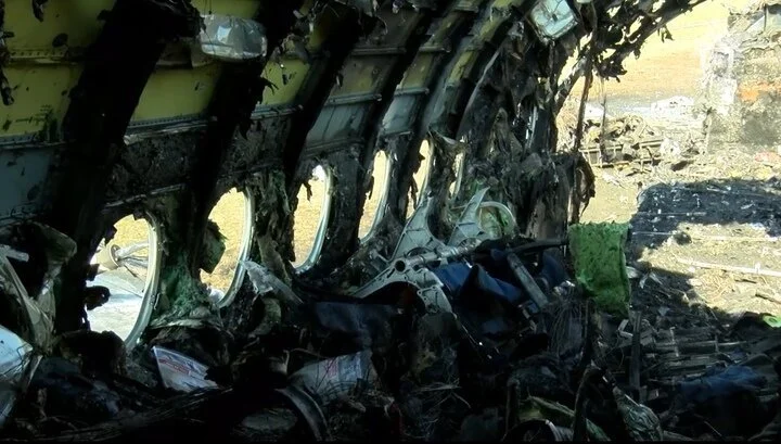 Выгоревший салон «Суперджета» сняли на видео Пожар на борту Sukhoi Superjet-100, в воскресенье совершившего аварийную посадку в аэропорту Шереметьево после попадания молнии , Новости