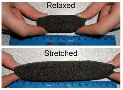 Открыт уникальный синтетический материал, который при растягивании становится толще! Новая непористая структура с уникальными «ауксетическими» свойствами при растягивании. Термин ауксетический происходит от греческого слова αὐξητικός (auxetikos), что означает «то, что имеет тенденцию к увеличению».