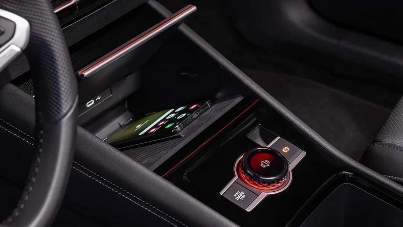 Внутренний мир автомобиля также не остался без изменений. В центре внимания — обновленная мультимедийная система с гигантским экраном в 15 дюймов. А классический селектор коробки передач был перемещен, освободив место для беспроводной зарядки и инновационного переключателя с экраном.