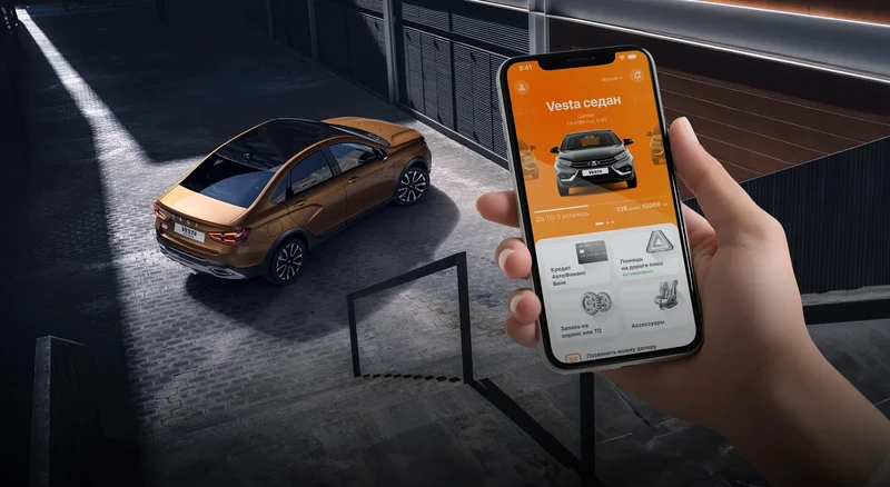 Приложение "Мир Lada", которое предлагает пользователю доступ к широкому спектру услуг, включая удаленное управление автомобилем, информацию о состоянии автомобиля, напоминания о ТО и доступ к эксклюзивным акциям и предложениям.