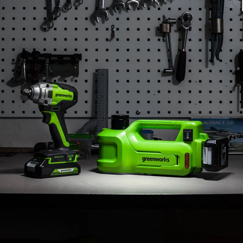Гайковёрт GD24IW400 и домкрат Источник фото: Greenworks