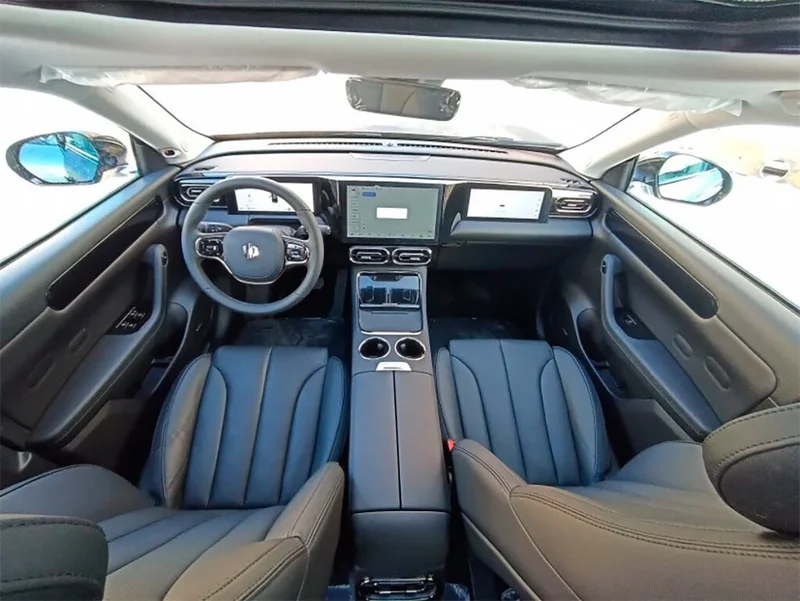Кожаный салон, цифровая панель приборов с тремя дисплеями. В машине есть функция распознавания голоса, лица и отпечатков пальцев владельца. Предусмотрен индивидуальный экран для пассажира на переднем сиденье, так же имеется и центральный тачпад.