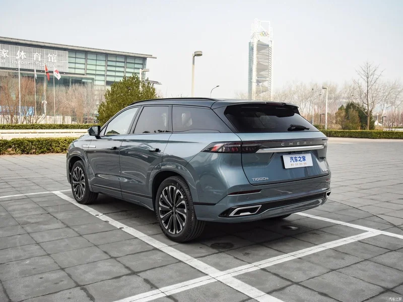 Корма примечательна спойлером на багажнике, единым модулем фонарей, с буквенным названием бренда в центре и фальшивым диффузором, имитирующим раздельную выхлопную систему. Изящные нотки привносит в экстерьер обильное количество хрома. Что касается габаритов кузова, то длина, ширина и высота нового автомобиля составляют 4820/1930/1699 мм соответственно, а колесная база — 2820 мм. На данный момент это самый большой кроссовер семейства Chery.
