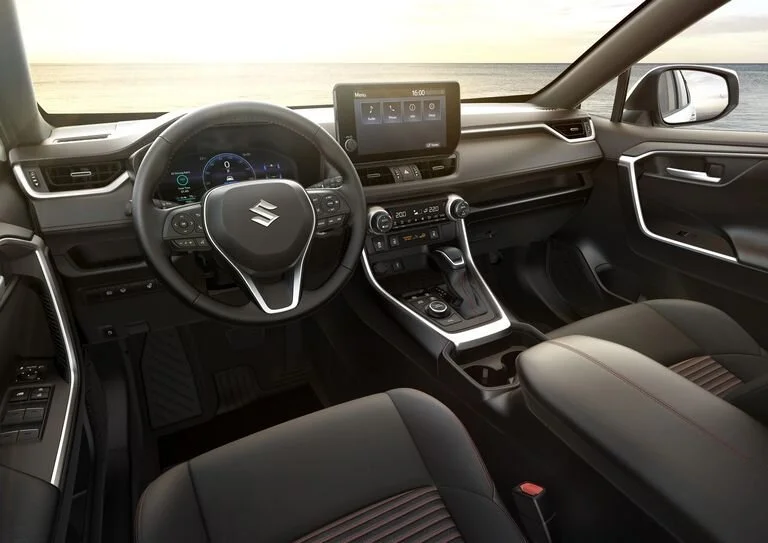 Главное отличие Suzuki Across заключается в мультимедийной системе. Новый 10,5-дюймовый сенсорный экран, расположенный в верхней части приборной панели, оснащен единственной физической поворотной ручкой в крайнем левом углу. Это значительно упрощает его управление по сравнению с предыдущим дисплеем, который имел подавляющее сочетание двух колесиков и восьми кнопок.