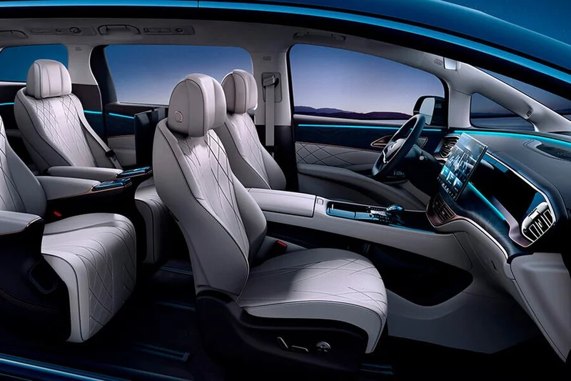 Семи местный автомобиль с вместительным багажником снабжен функцией дистанционного открытия задней двери, есть приспособленный круиз-контроль, аудиосистема с четырнадцатью динамиками, имеется холодильник. Кресла в первом и среднем рядах с вентиляцией и массажем, крыша с большим обзором.