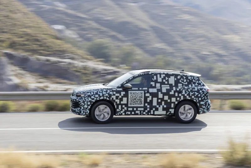В типичном стиле Volkswagen третье поколение Tiguan впервые предстало перед публикой в камуфляже, вдохновленном QR-кодом, перед официальным запуском этой осенью.