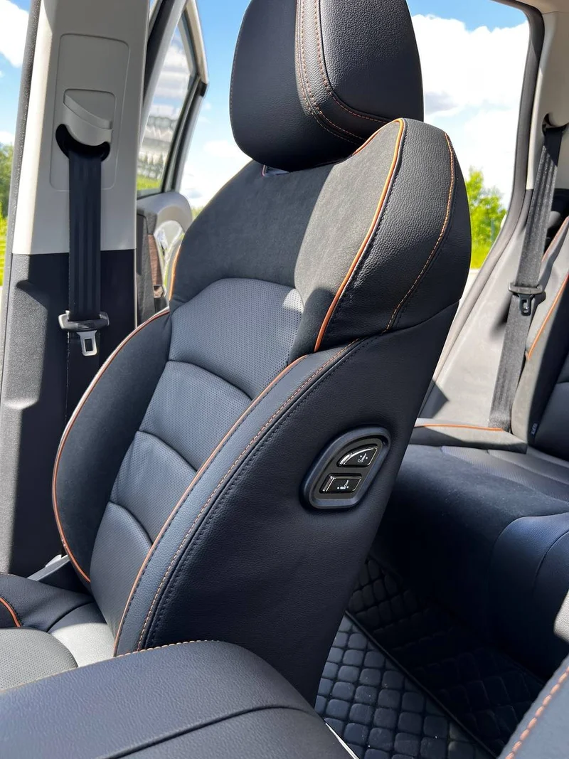 Многофункциональное рулевое колесо можно регулировать в 4 направлениях. Передний и задний подлокотники имеют функцию охлаждения. На первом ряду кресел имеются подогрев и вентиляция, а также опция электрорегулировки сидений и высоты ремней безопасности. Во втором ряду кресел можно менять уровень наклона спинки. Там же есть воздуховоды.