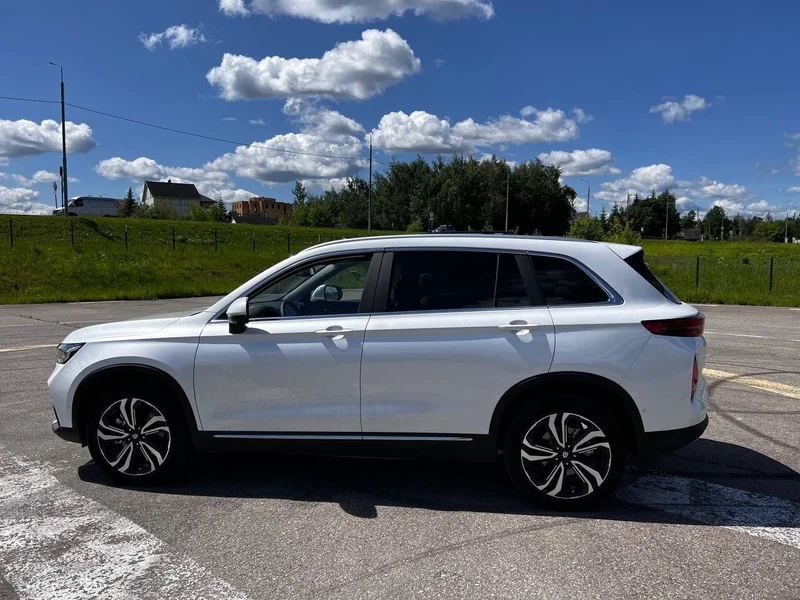 SKYWELL ET5 имеет классический облик современного кроссовера. В наличии панорамная крыша с площадью остекления 0,83 кв.м, тонировка задних стекол, 19-дюймовые двухцветные колесные диски из легкосплавных материалов, а также зеркала заднего вида с обогревом, электроприводом и функцией автоматического складывания.