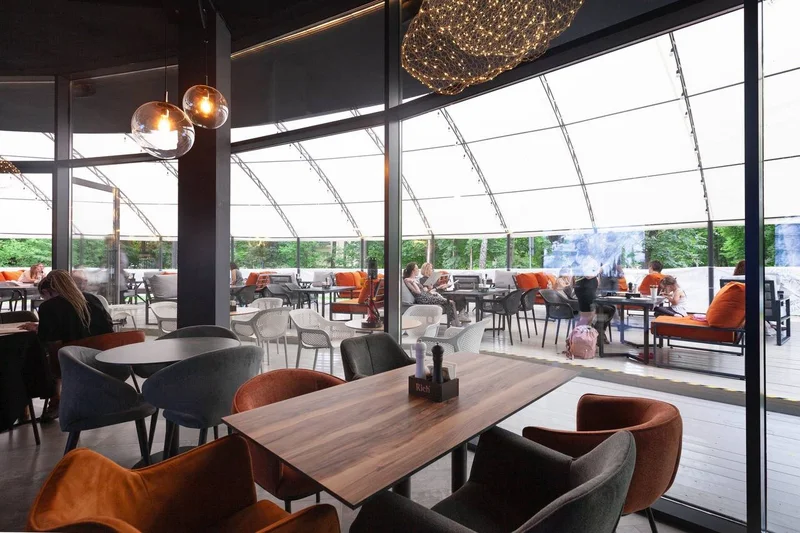 В советские годы на этом месте располагалась знаменитая "Чебуречная" в форме "шайбы", мы постарались сохранить прошлый шарм этого места и панорамное остекление для того, чтобы гостям ресторана было приятно наблюдать за сменой всех четырех сезонов.