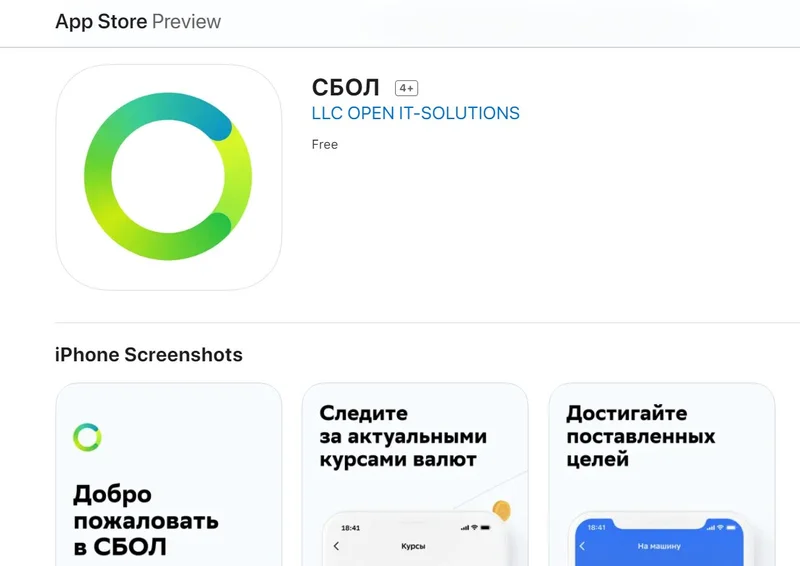 Приложение "Сбербанк онлайн" вновь можно найти и скачать в магазине приложений для устройств на базе IOS App Store, однако теперь приложение регулятора называется иначе - СБОЛ (сокращенно от "Сбербанк онлайн").