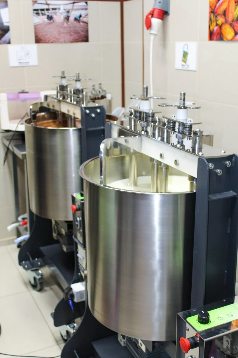 У каждого нашего меланжера есть имя. Так уж повелось. Для нас они – полноценные сотрудники Cacava. Работают больше всех нас вместе взятых. Все меланжеры (специальные мельницы с гранитными жерновами) сделаны под наши потребности, что увеличивает производительность и даёт больше возможностей для творчества.