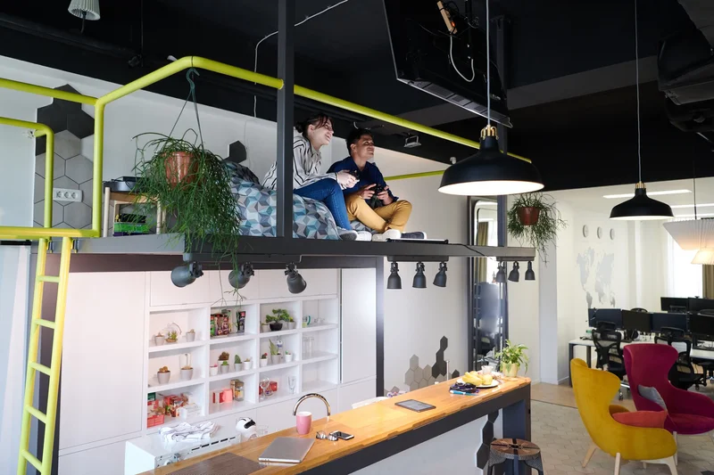 Можно совмещать работу и общение: так, в свободное время сотрудники общаются, обедают и отдыхают, не покидая офис. Это особенно удобно делать в перерывы, предназначенные для отдыха и приема пищи. Рациональное решение проблемы передвижения, когда достаточно сложно успеть отправиться на ланч и вернуться вовремя.