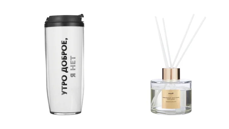 Термокружка "Утро доброе, я нет" 350мл; диффузор с ароматом Сандалового дерева 100мл Источник фото: пресс-служба modi
