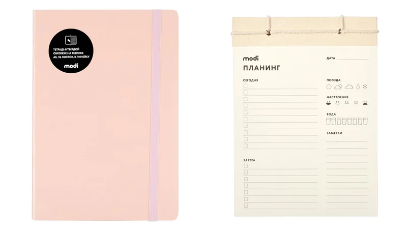 Тетрадь в твердой обложке на резинке А5, 80 листов, в линейку, планинг Источник фото: пресс-служба modi