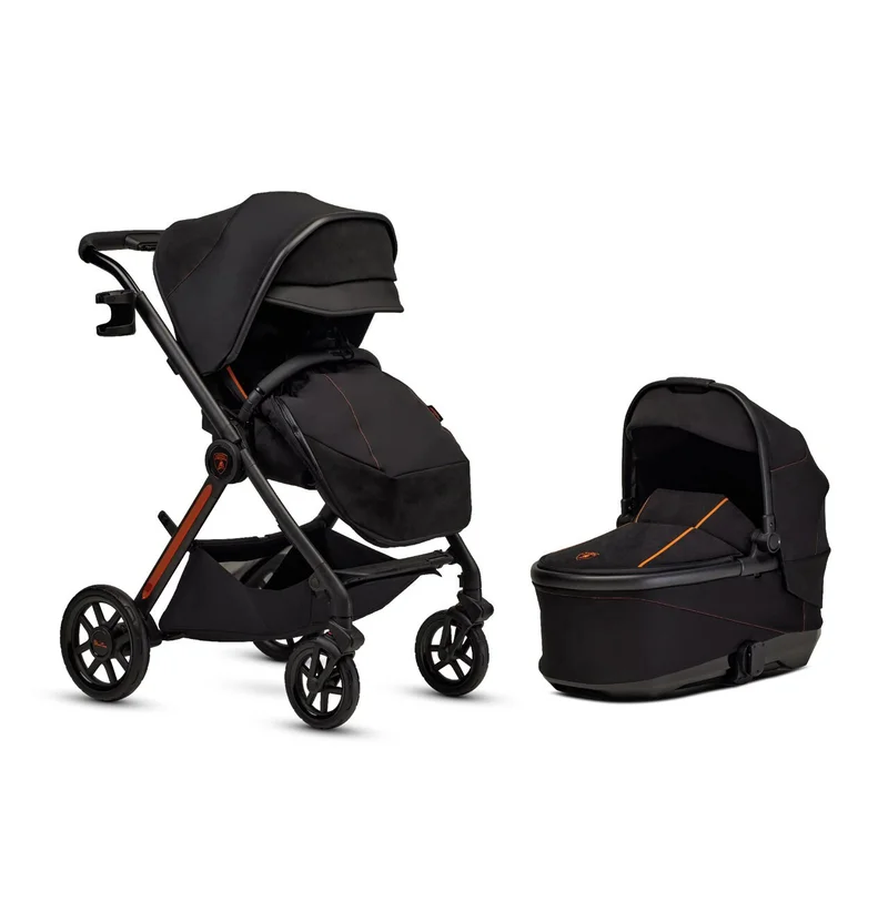 В комплект поставки включена люлька, прогулочный блок, карбоновое шасси, дорожная сумка, 2 тента от дождя, подстаканник, тент от солнца, москитная сетка и держатель для смартфона.