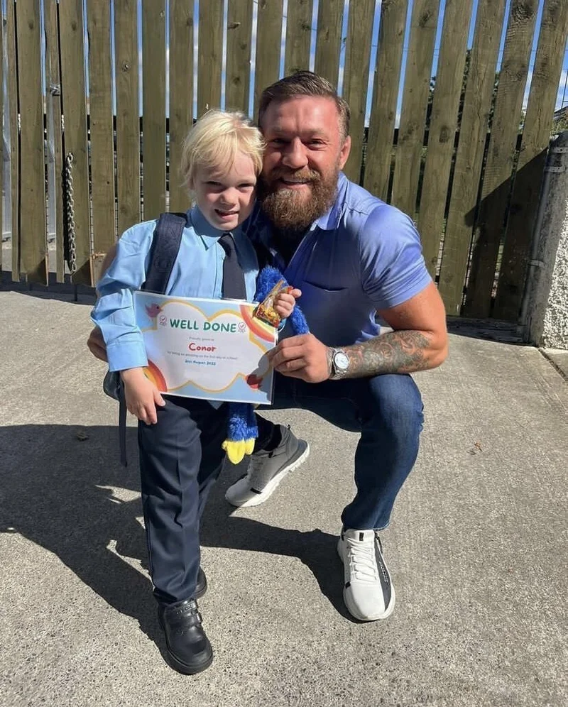 Знаменитый ирландец самолично отвел старшего сынишку Конора Джека Макгрегора в первый класс начальной школы, чем не преминул похвастаться в соцсетях.