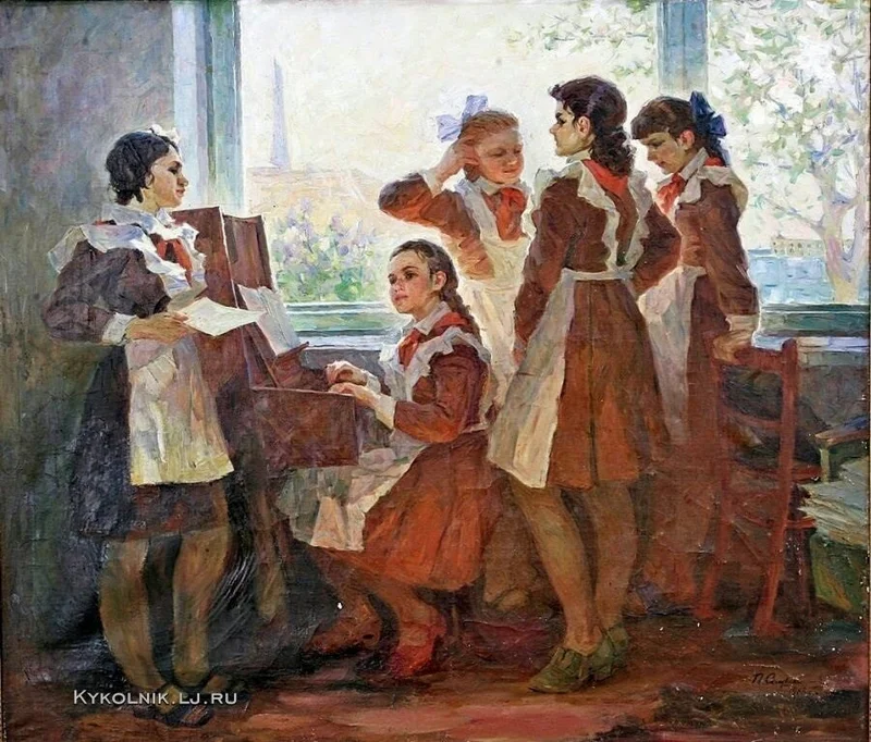 ● Символ пионерии — красный галстук — необходимо было беречь как зеницу ока. Поскольку школьник, который терял или портил эту деталь, не только осуждался одноклассниками, но и попадал под разбор на Совет класса; «Вожатые» Источник фото: Саушкин Павел Кузьмич (1988)