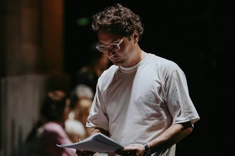 Эльдар Трамов во время работы над спектаклем "Обратная сторона медали". Источник фото: vakhtangov.ru/Юлия Губина.