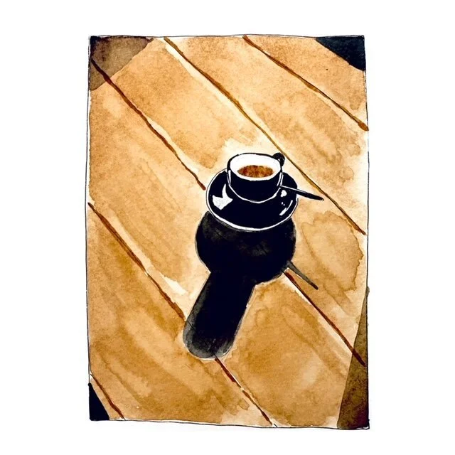 В 2017 мне казалось, что я забыла, как рисовать. И вот как раз я забрала дочку из сада, и она предложила мне зайти выпить кофе, потому что она уже тогда знала, что кофе - это самая большая любовь моей жизни в смысле деятельности.