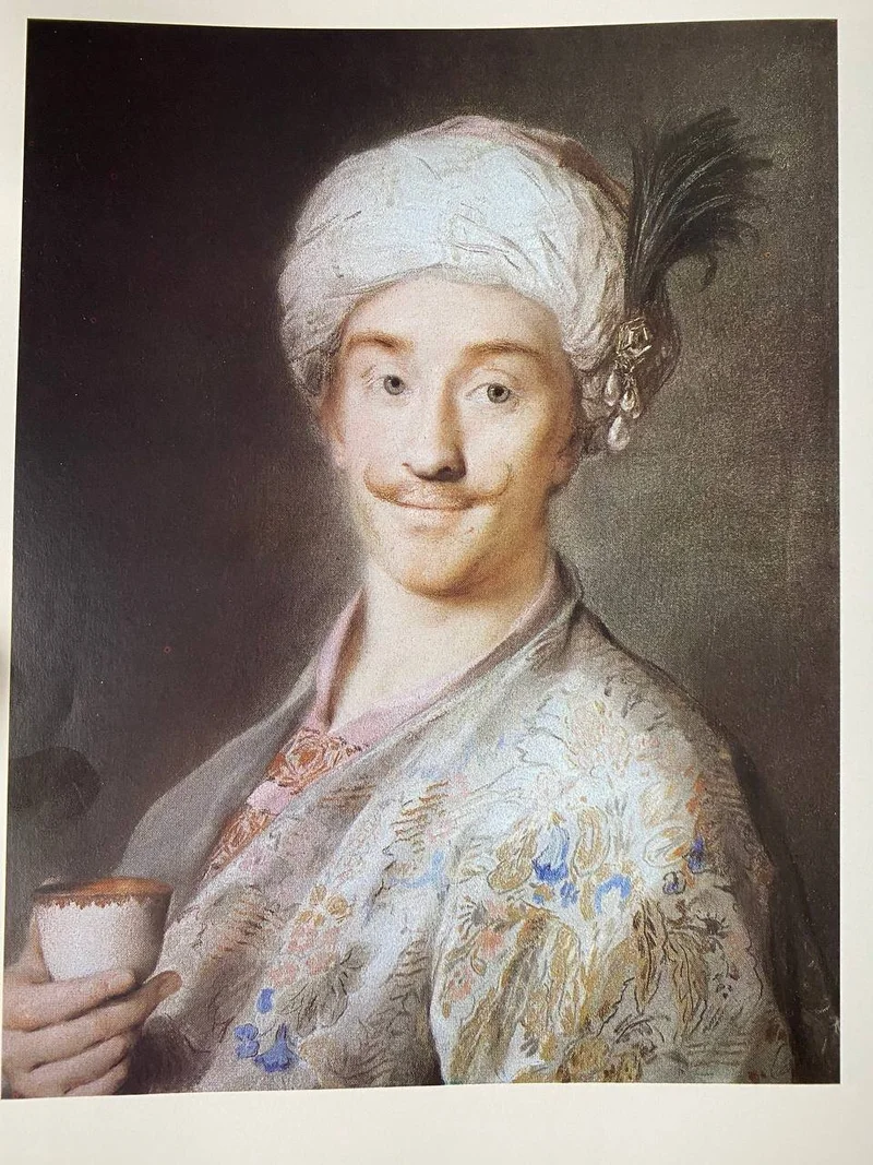 В 1739 год итальянская художница Розальба Каррьера пишет картину “Coffee drinker in Turkish Costume”.