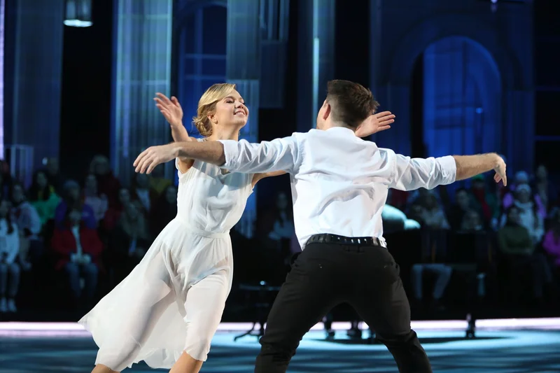а Дарья Мороз и Максим Маринин представили весёлый номер под композицию "Hello, Dolly!" из кинофильма "Смешная девчонка".