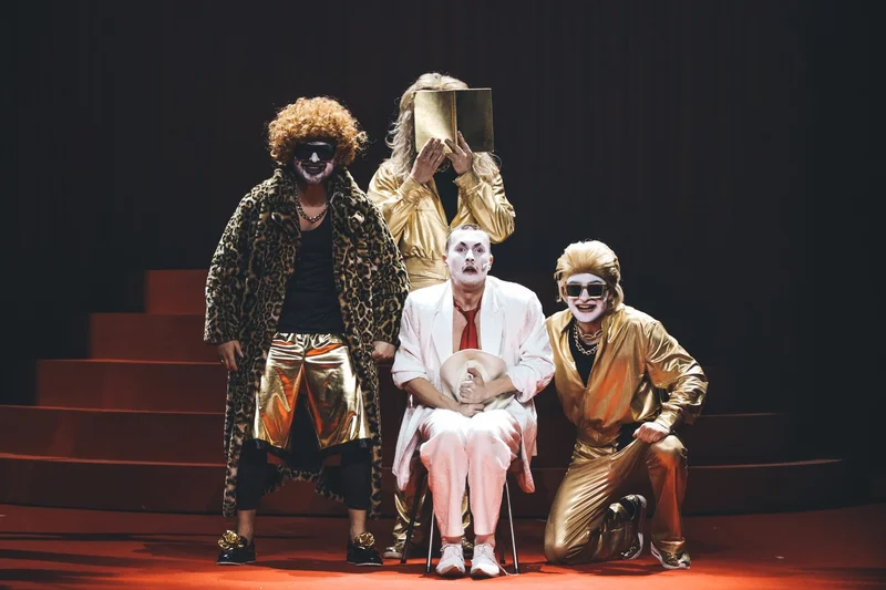 Очень интересен подход постановщика к изображению персонажей. Это не «обычные» люди, а гипертрофированные личности. Можно сказать, что зрители в течение двух часов наблюдают за своеобразным цирковым представлением. Герои расхаживают по сцене с клоунскими носами и в ботинках с удлинёнными носами. Внешность каждого тщательно продумана – Ида «порхает» в пачке, Грга-старший с длинными чёрными волосами, белым лицом и глубоким, «ухающим как в бочку», голосом напоминает кузена Уэнсдэй из популярного сериала, Афродита с ярко-рыжими волосами и разукрашенным лицом фарфоровую куклу, а Карамболо в постоянно сменяемых блестящих костюмах выглядит «золотым мальчиком» местного подпольного мирка. В каждом подчёркнута эта его главная черта характера, делающая людей на сцене драматургическими функциями, но при этом двигающая театральное действие к логическому и фееричному финалу.