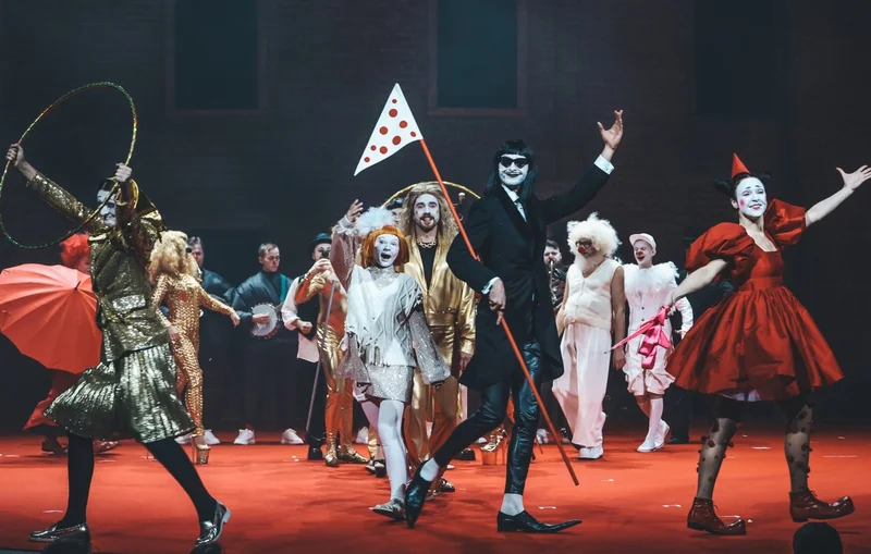Но при этом, смотря на разворачивающиеся на сцене события, смену декораций, костюмов, мелодий, вы можете ощутить, как за этой красочностью, и даже буйностью, скрывается саднящее чувство реальности. Жизнь иногда и напоминает цирк, но сопровождается, к сожалению, он во взрослом возрасте зачастую разочарованием и отторжением. Радость и непосредственность, которую мы испытывали в детстве при виде людей с красными носами, ушла, а клоуны, как мы узнали, не всегда бывают весёлыми.