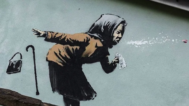 Бэнкси нарисовал новое граффити Бэнкси нарисовал новое граффити в виде чихающей женщины. , Шоу-бизнес