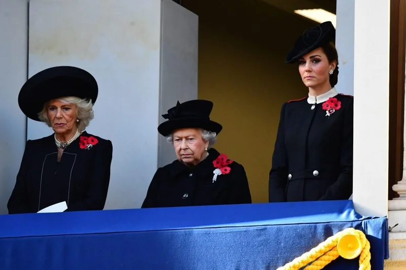Британская королева Елизавета II и Кейт Миддлтон посетили церемонию в честь Дня памяти Представители королевской семьи почтили память погибших военнослужащих на возложении цветов , Шоу-бизнес