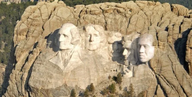 Канье Уэст добавил свой портрет на гору Рашмор Канье Уэст опубликовал в твиттере отредактированную фотографию горы Рашмор. , Шоу-бизнес