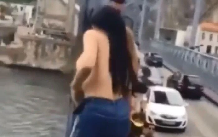 Голый прыжок совершила девушка с высокого моста Неизвестная девушка разделась и спрыгнула в воду с 45-метрового моста Понти-ди-Дон-Луиш I в Португалии , Шоу-бизнес