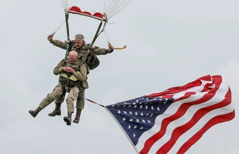 Ветеран прыгнул с парашютом в 97 лет Американский ветеран Том Райс совершил прыжок с парашютом в 97 лет. , Шоу-бизнес