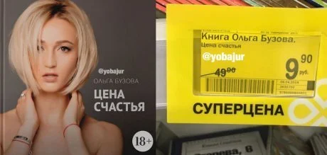 Никто не хочет покупать литературный шедевр от Бузовой В Сети появилась фотография книги Ольги Бузовой «Цена счастья». Она продается в сети известных супермаркетов, но, судя по всему, не пользуется спросом , Шоу-бизнес