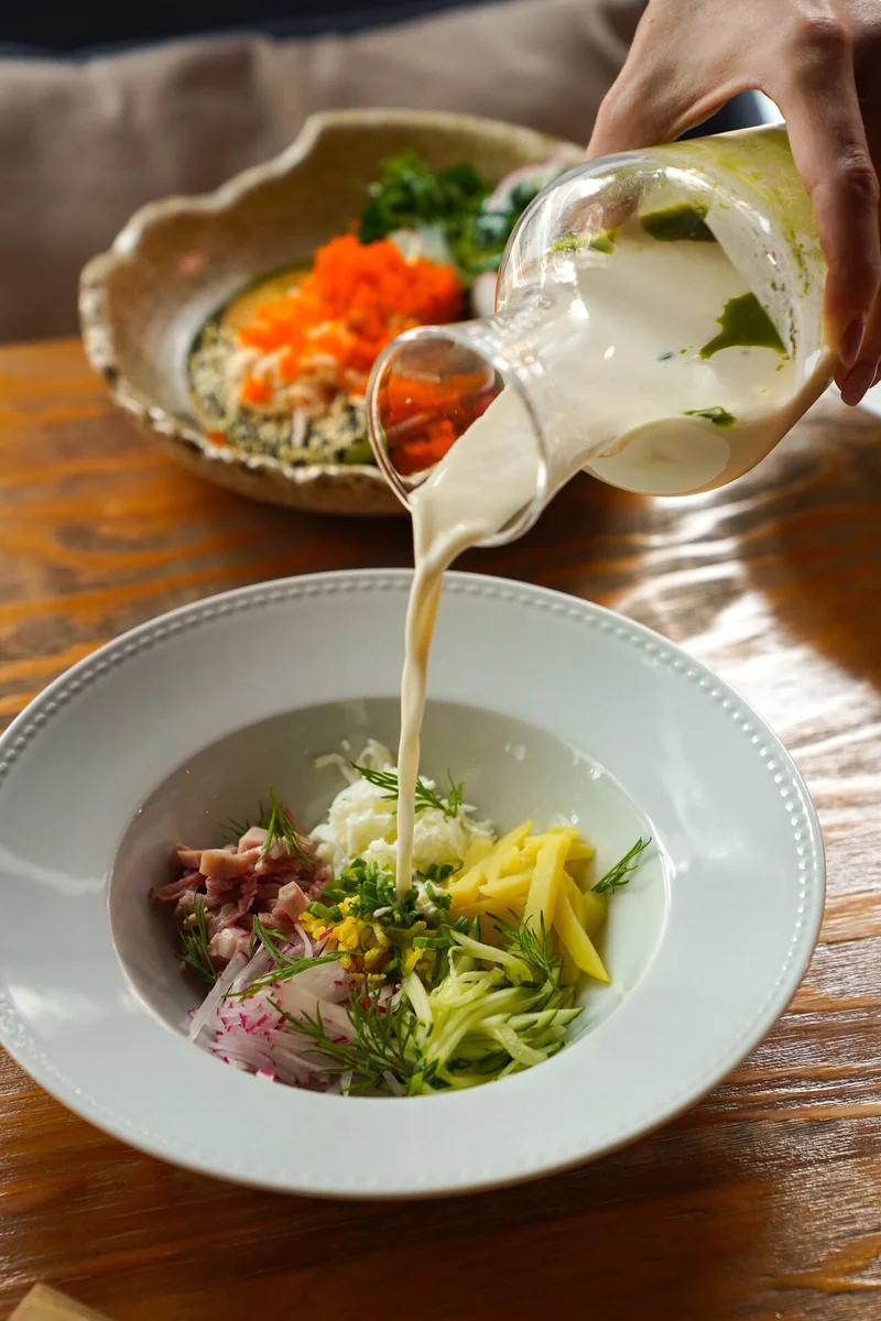 Окрошка с авторской заправкой от Дмитрия Волочаева. Источник фото: Личный архив Дмитрия Волочаева.