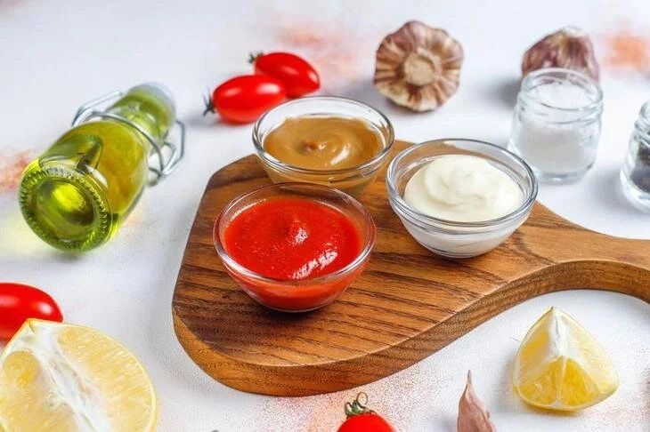 Еда, заправленная майонезом или кетчупом, ухудшает состояние сосудов, делая их менее пластичными и забивая холестерином. Последствия пристрастия к покупным соусам (в которых в действительности по минимуму томатов и прочих натуральных компонентов) могут быть весьма печальными — атеросклероз, гипертония...