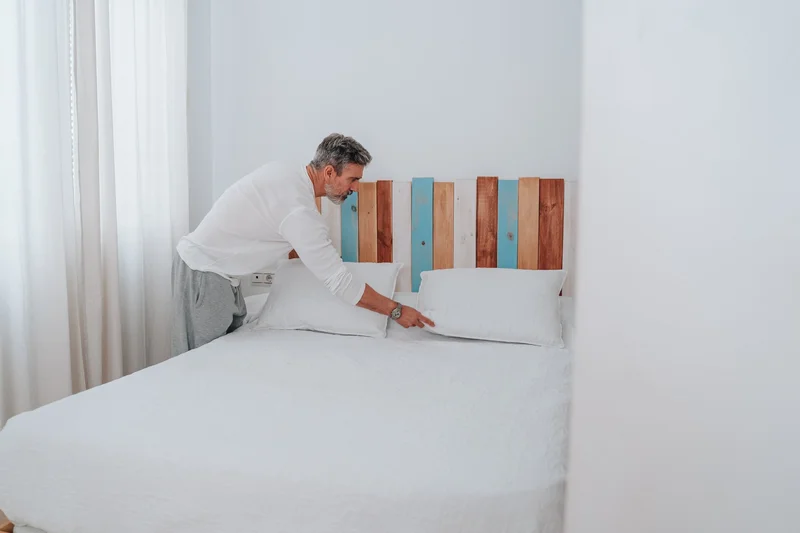 Мужчина застилает постель. Источник фото: freepik.com