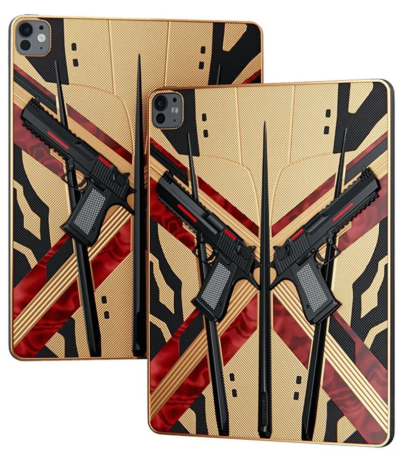 Одной из самых заметных особенностей iPad Pro Criss-Cross является объёмный барельеф пистолетов Desert Eagle Mark XIX на его задней панели. Эти пистолеты ассоциируются с Дедпулом — главным героем ожидаемого блокбастера 2024 года «Дедпул и Росомаха». Такой дизайн делает планшет не только устройством высокой производительности, но и настоящим коллекционным предметом.