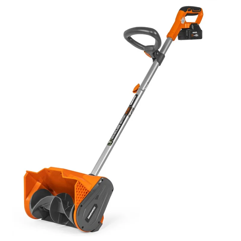 Еще один аккумуляторный компактный снегоуборщик Daewoo DAST 3321Li Set, который хоть давно уже не является новинкой рынка, но все же еще активно продается. Электролопата за один проезд очищает полосу в 33 см. Работает с 21В Li-ion аккумуляторной батареей ёмкостью 4.0 Ач и бесщеточным двигателем.