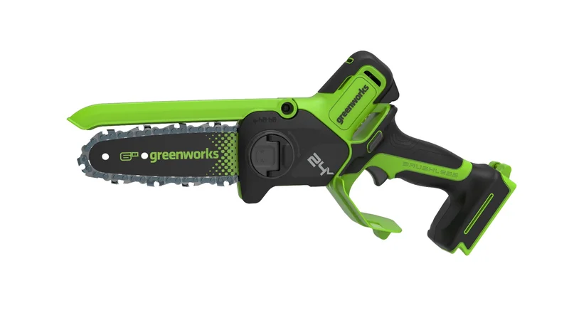 Универсальная мини-пила Greenworks GD24CS15 станет не только хорошим помощником при работе в саду, но и подойдет и для заготовки дров, и для распила досок при ремонте или строительстве.