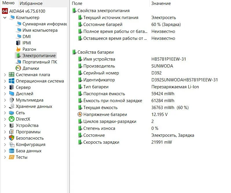 - Аккумулятор — 60 Втч с адаптером на 65 Вт;