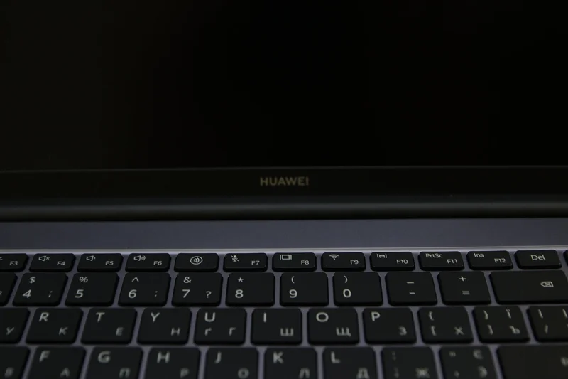 В этом ноутбуке Huawei решили отказаться от классического для мэйтбуков расположения камеры в клавише. Это обеспечивало полную конфиденциальность, ведь пользователь мог быть уверен в том, что камера не активна. В D16 производитель разместил камеру по центру верхней рамки дисплея, предложив ее программное отключение.