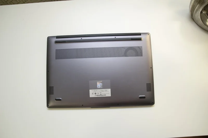 Значительную часть содержимого корпуса занимает система охлаждения и аккумулятор ноутбука. Так же, как и в ранних моделях, пользователям недоступно увеличение технических характеристик - оперативная память, как и процессор, распаяны на материнской плате. Зато, можно относительно быстро заменить основной диск в случае нехватки свободного места, а учитывая его ёмкость в 512 Гб, это произойдёт далеко не скоро.