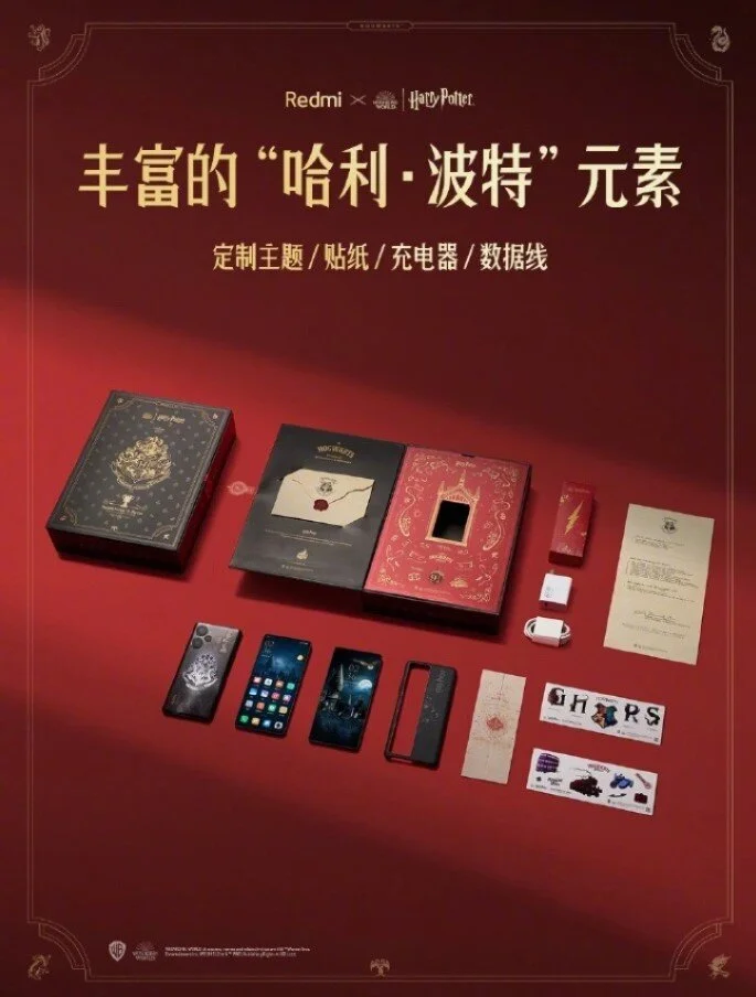 Компания Xiaomi выпустила лимитированную серию смартфона Redmi Note 12 Turbo Harry Potter Edition, в комплекте к которому идут: волшебная палочка, мантия и шарфы факультетов Школы чародейства и волшебства Хогвартса, кроме того в магическую коробочку входят руководство по созданию карты "карты мародеров", чехлы.