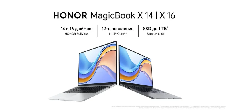 В России стартовали продажи ноутбуков HONOR MagicBook X 14 и HONOR MagicBook X 16 с интеллектуальными функциями Модели получили процессоры Intel Core 12-го поколения, мощные аккумуляторы 60 Вт·ч и возможность установки до 1 ТБ дополнительной SSD. , Hi-Tech
