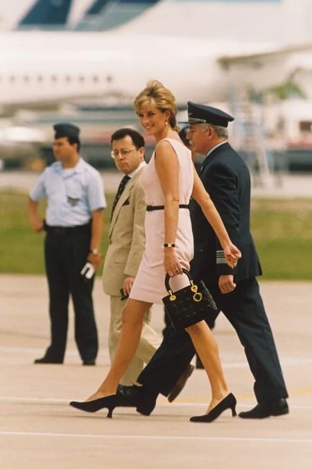 В 1995-м году тогдашняя первая леди Франции Бернадетт Ширак подарила принцессе Диане изящную кожаную сумочку с прошивкой и свисающим шармом-буквой от Dior. Узор на коже был позаимствован у стульев Наполеона III, которые бренд использовал на своём первом показе в 1947-м году. Несмотря на статус дорогого подарка, преподнесённого королевской особе, аксессуар быстро попал в поле зрения публики и вызвал желание иметь собственную версию. В конце концов, Dior назвал сумку «Lady Dior», в честь принцессы Дианы, погибшей в Париже в 1997-м году.