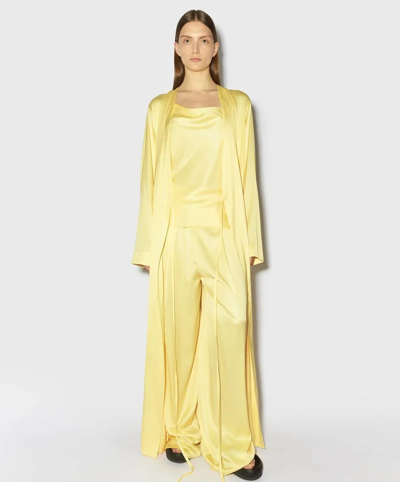 Этот оттенок жёлтого слегка оживит вашу нейтральную палитру. Примеры можно найти у Carolina Herrera, Jason Wu и др. Среди наших брендов UShatáva подхватил «маслянистый» оттенок, предложив модницам облачиться в этом сезоне в костюм из блестящего сатина.