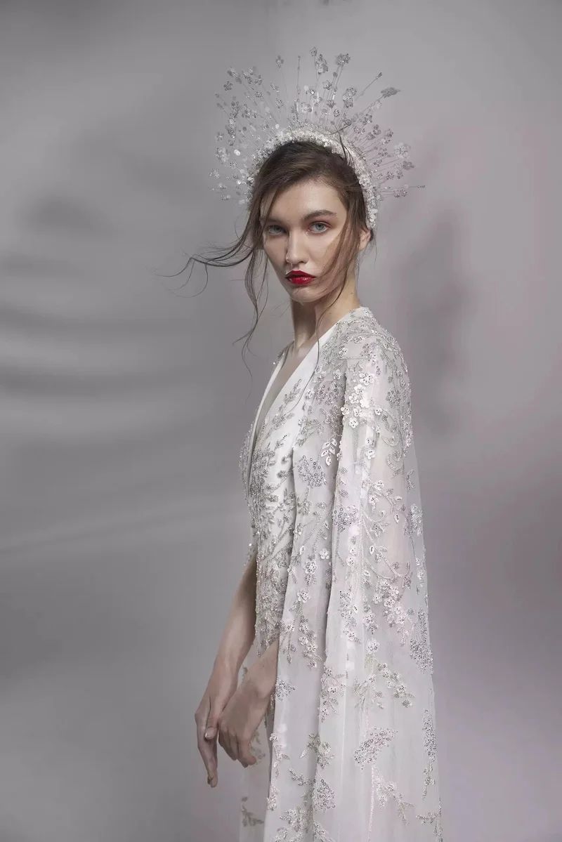 Этот аксессуар для невест появился ещё в прошлых сезонах, сейчас дизайнеры решили отойти от их традиционного белого цвета. Они представили эффектные, богато украшенные версии. Например, Rami Al Ali и Kelly Faetanini выпустили обручи с бисерной вышивкой витиеватых орнаментов, напоминающих о тиарах принцесс. Оба дизайна содержат цветочный мотив, выражающий красоту через природу.